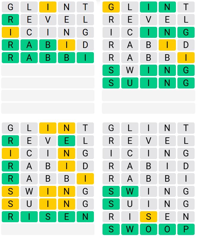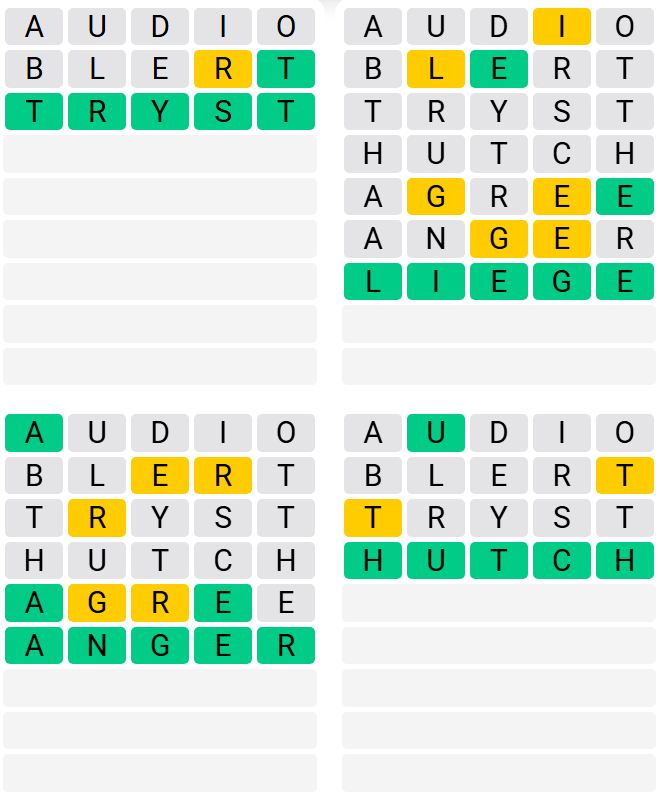 It is the most popular daily word game outside of Wordle due to the increased level of difficulty. Players must guess four five-letter words in as few as nine attempts, rather than guessing one word.
