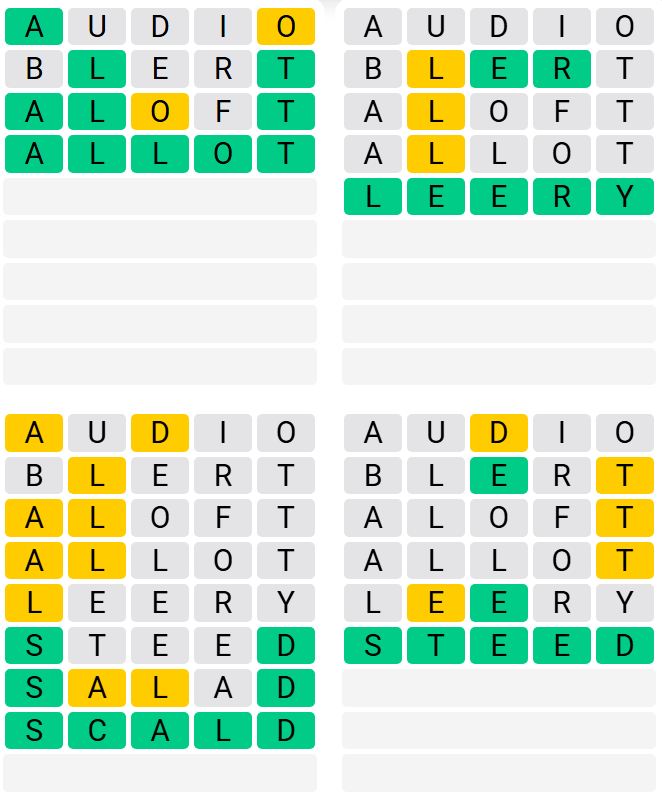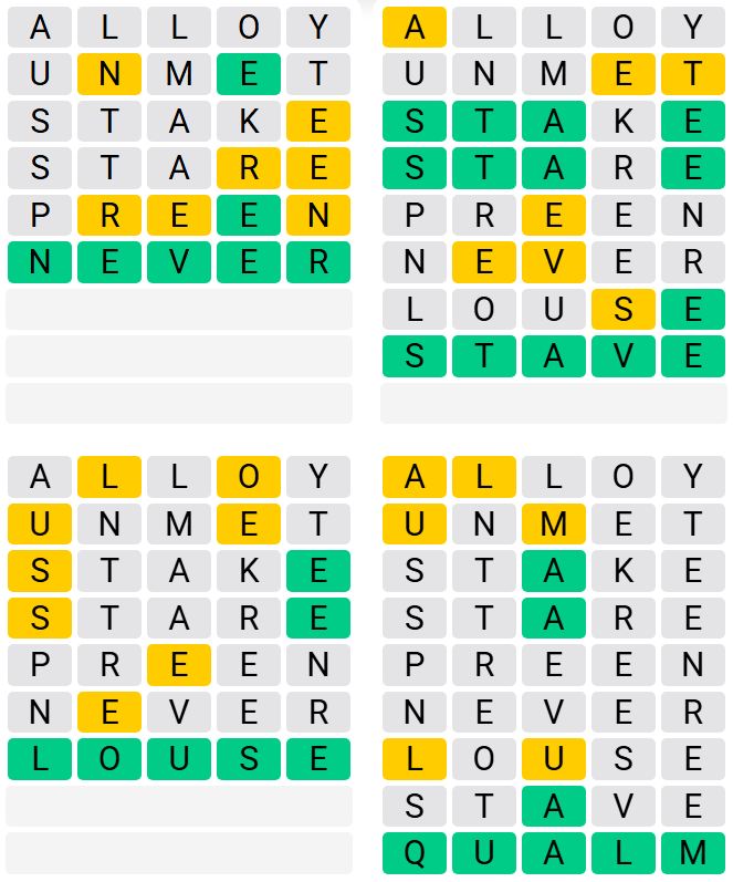 It is the most popular daily word game outside of Wordle due to the increased level of difficulty. Players must guess four five-letter words in as few as nine attempts, rather than guessing one word.