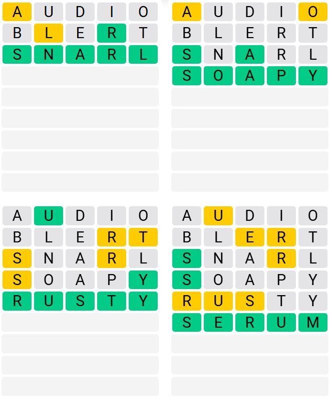 Let us know how many attempts it took you to guess today’s Quordle below.