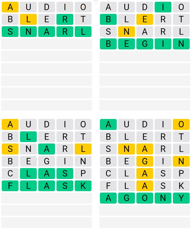Let us know how many attempts it took you to guess today’s Quordle below.