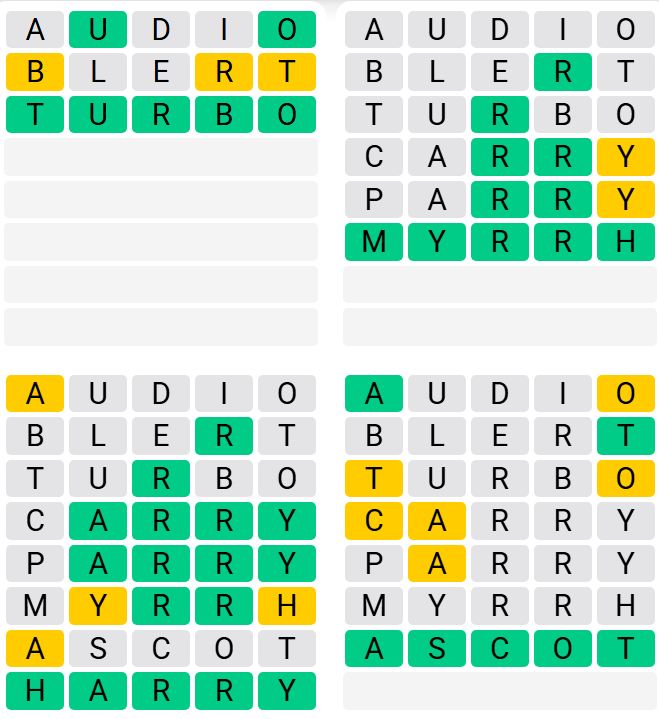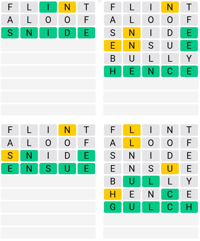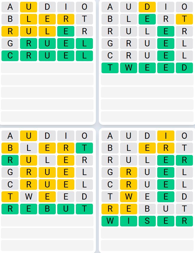 It is the most popular daily word game outside of Wordle due to the increased level of difficulty. Players must guess four five-letter words in as few as nine attempts, rather than guessing one word.