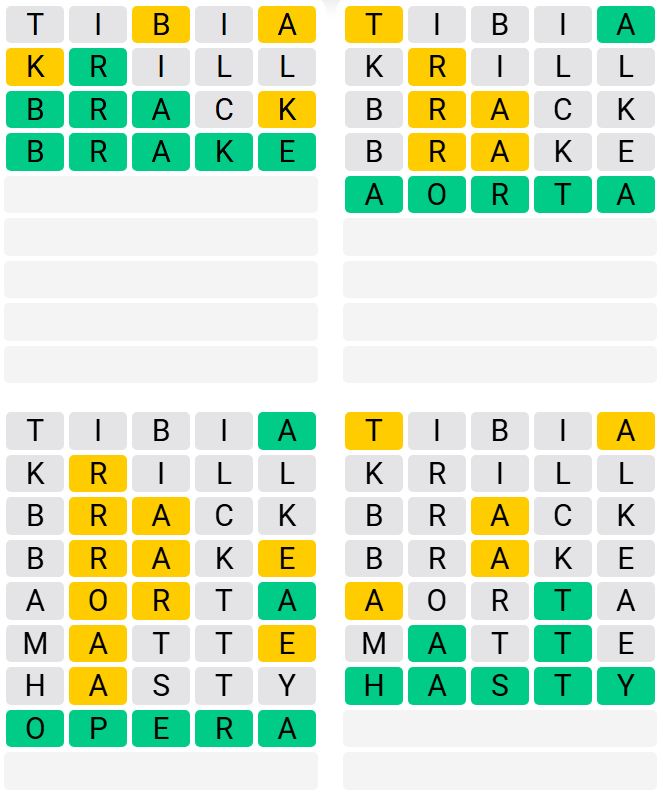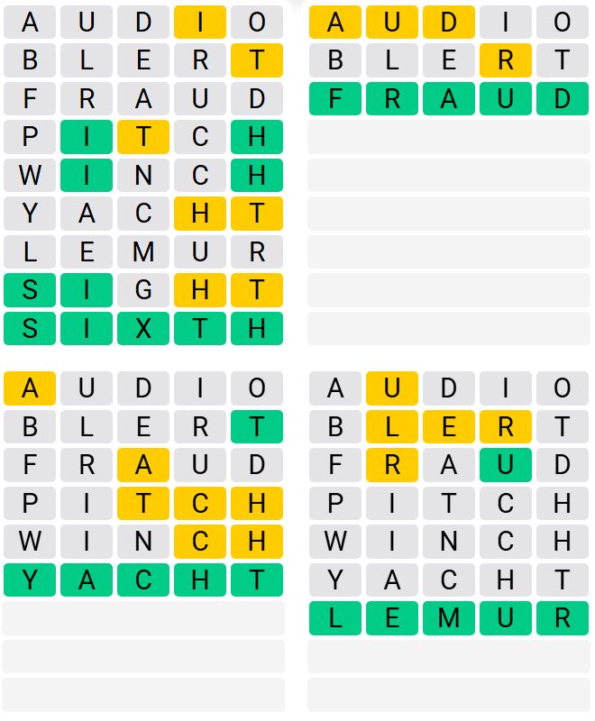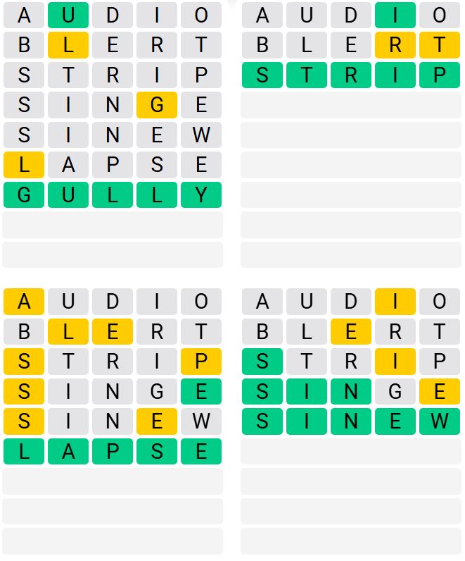 It is the most popular daily word game outside of Wordle due to the increased level of difficulty. Players must guess four five-letter words in as few as nine attempts, rather than guessing one word.