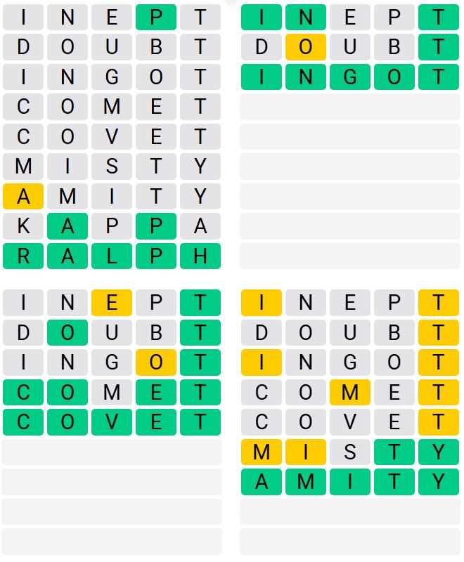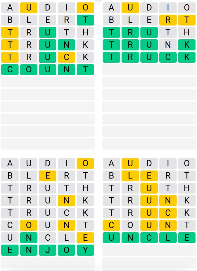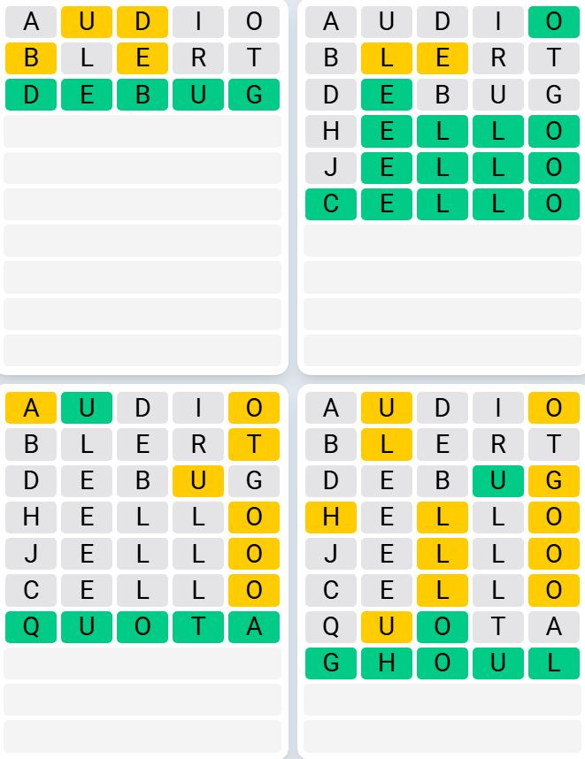 It is the most popular daily word game outside of Wordle due to the increased level of difficulty. Players must guess four five-letter words in as few as nine attempts, rather than guessing one word.