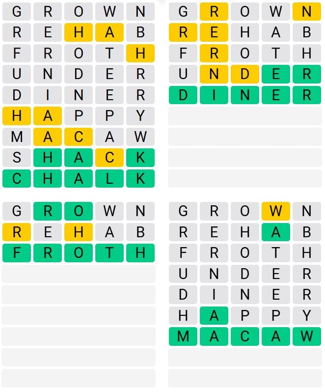 It is the most popular daily word game outside of Wordle due to the increased level of difficulty. Players must guess four five-letter words in as few as nine attempts, rather than guessing one word.