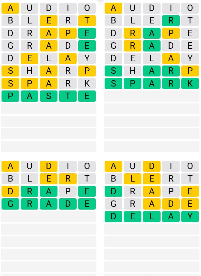 It is the most popular daily word game outside of Wordle due to the increased level of difficulty. Players must guess four five-letter words in as few as nine attempts, rather than guessing one word.