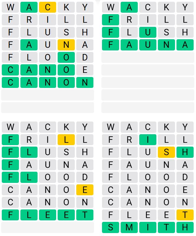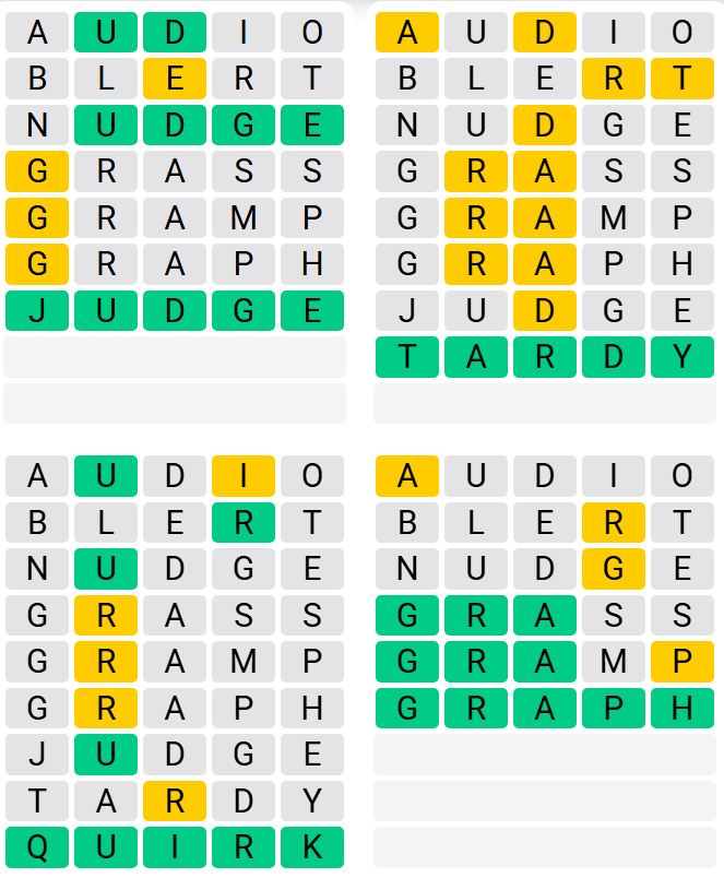 It is the most popular daily word game outside of Wordle due to the increased level of difficulty. Players must guess four five-letter words in as few as nine attempts, rather than guessing one word.