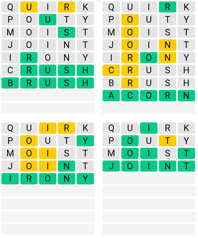 It is the most popular daily word game outside of Wordle due to the increased level of difficulty. Players must guess four five-letter words in as few as nine attempts, rather than guessing one word.