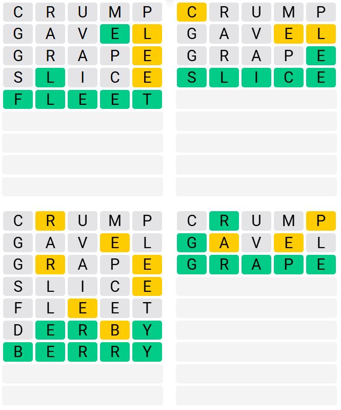It is the most popular daily word game outside of Wordle due to the increased level of difficulty. Players must guess four five-letter words in as few as nine attempts, rather than guessing one word.