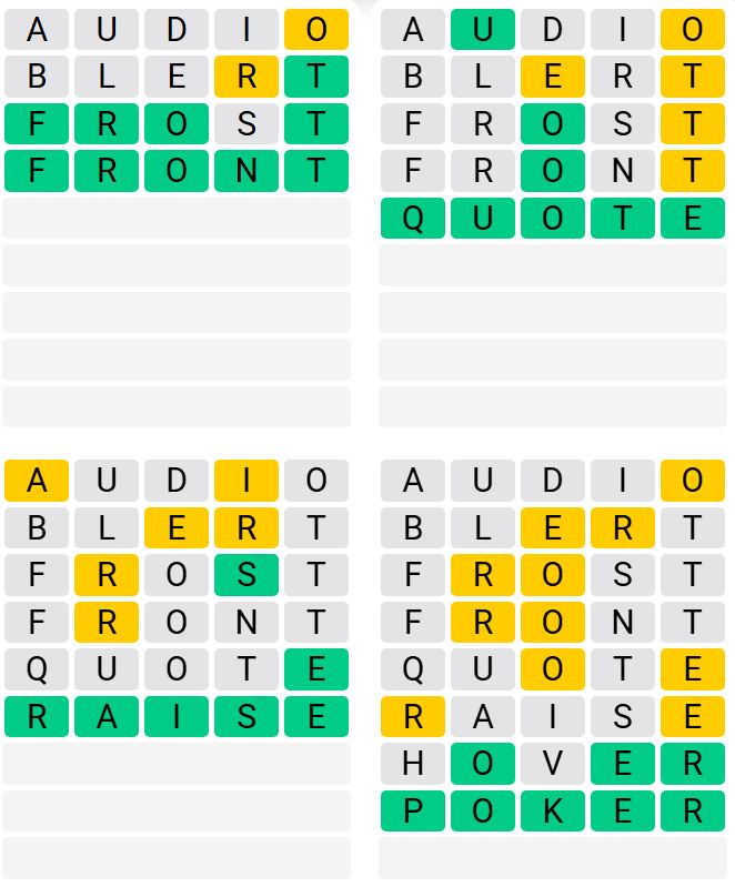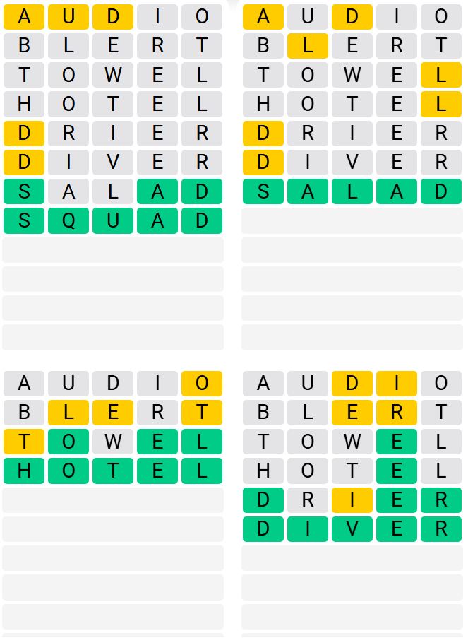 It is the most popular daily word game outside of Wordle due to the increased level of difficulty. Players must guess four five-letter words in as few as nine attempts, rather than guessing one word.