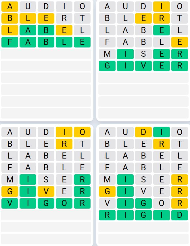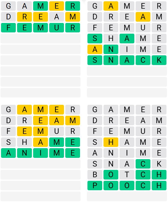 Let us know how many attempts it took you to guess today’s Quordle below.