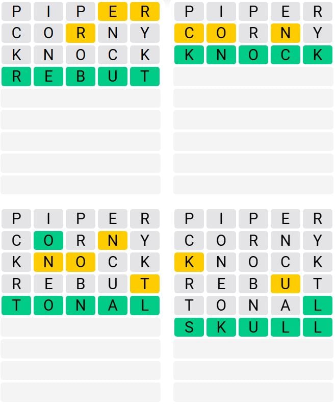 It is the most popular daily word game outside of Wordle due to the increased level of difficulty. Players must guess four five-letter words in as few as nine attempts, rather than guessing one word.