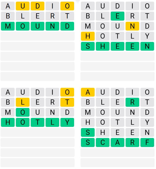 It is the most popular daily word game outside of Wordle due to the increased level of difficulty. Players must guess four five-letter words in as few as nine attempts, rather than guessing one word.