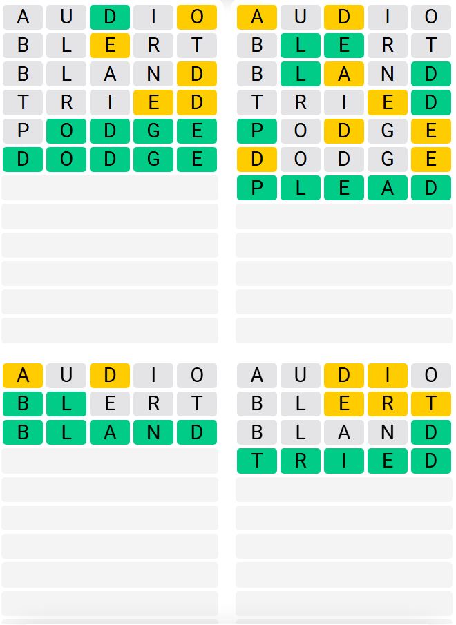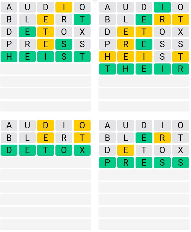 It is the most popular daily word game outside of Wordle due to the increased level of difficulty. Players must guess four five-letter words in as few as nine attempts, rather than guessing one word.