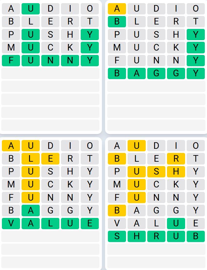 Let us know how many attempts it took you to guess today’s Quordle below.