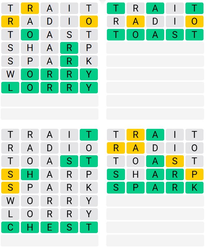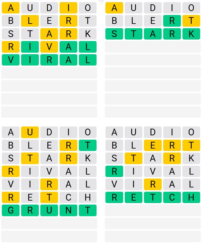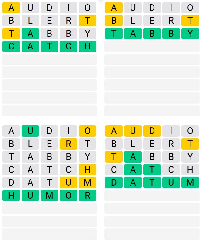 It is the most popular daily word game outside of Wordle due to the increased level of difficulty. Players must guess four five-letter words in as few as nine attempts, rather than guessing one word.