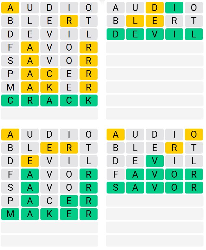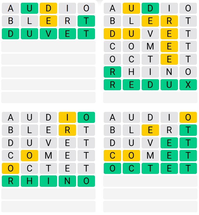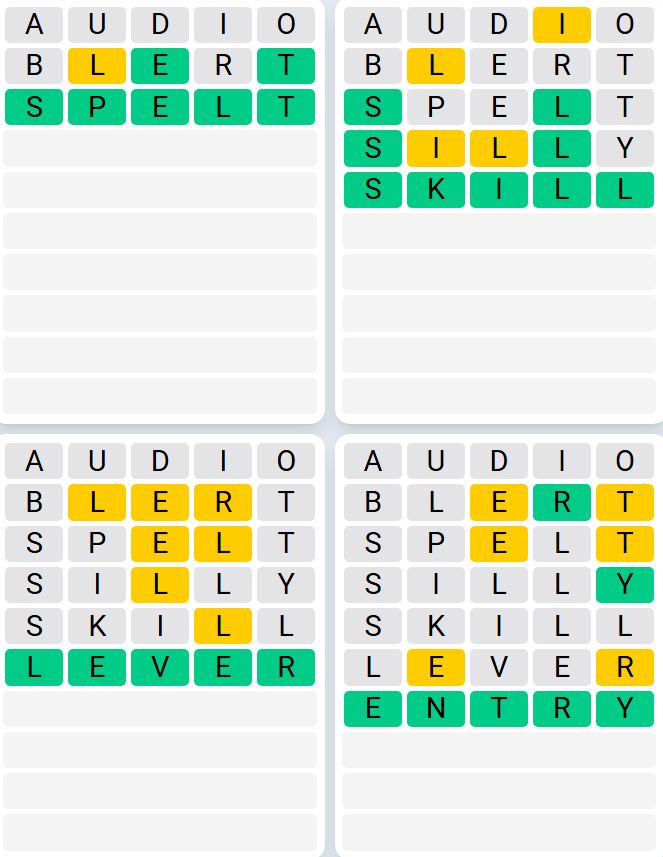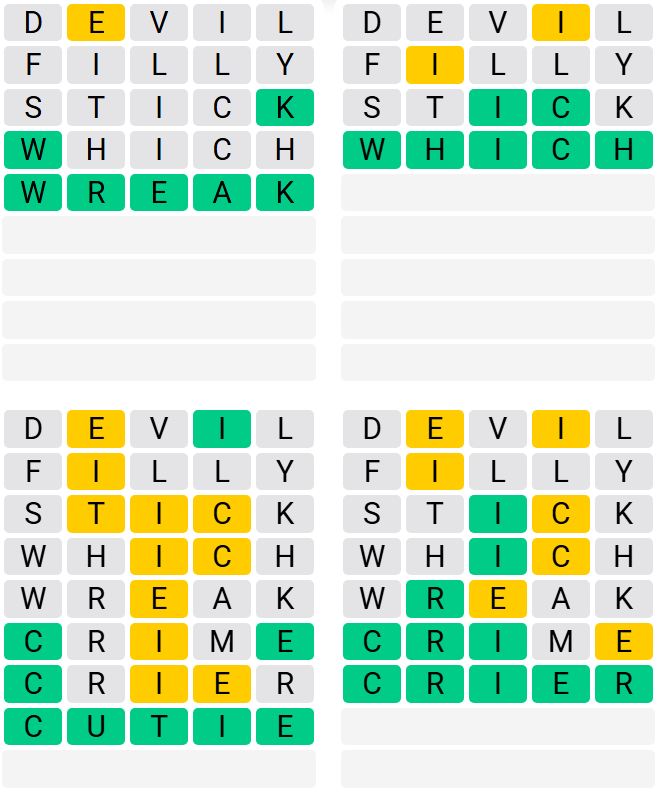 It is the most popular daily word game outside of Wordle due to the increased level of difficulty. Players must guess four five-letter words in as few as nine attempts, rather than guessing one word.