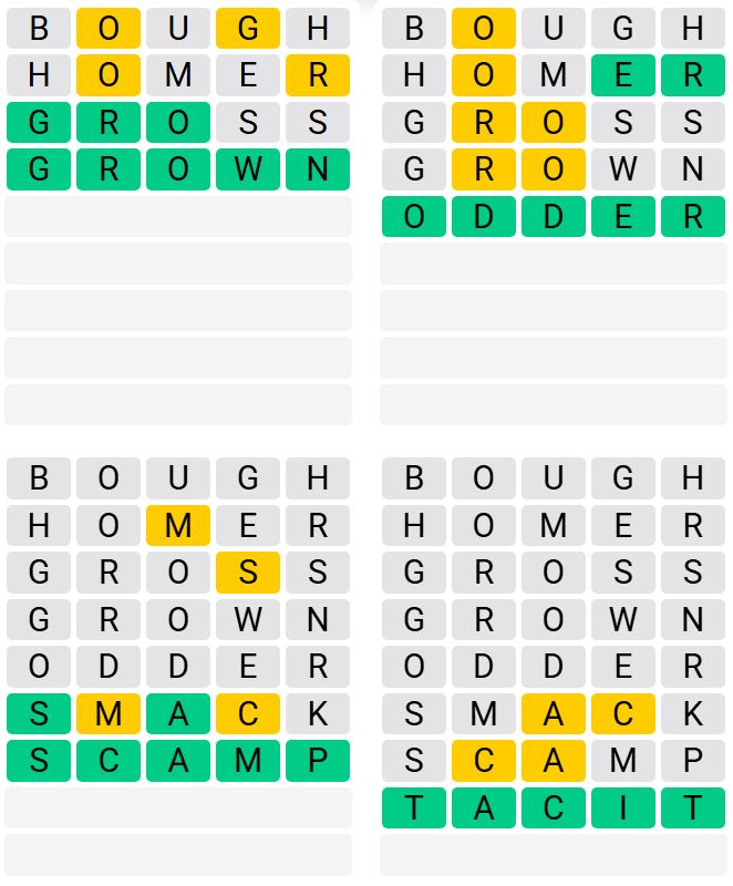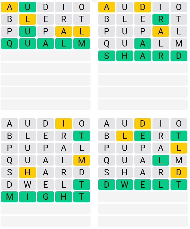 It is the most popular daily word game outside of Wordle due to the increased level of difficulty. Players must guess four five-letter words in as few as nine attempts, rather than guessing one word.