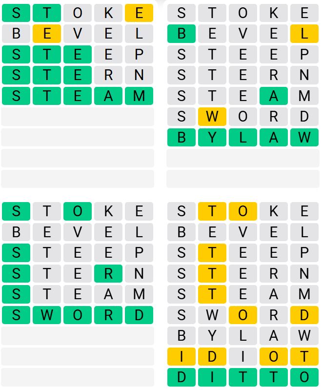 It is the most popular daily word game outside of Wordle due to the increased level of difficulty. Players must guess four five-letter words in as few as nine attempts, rather than guessing one word.