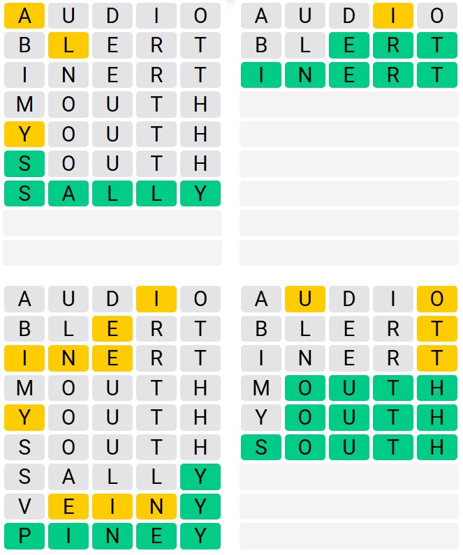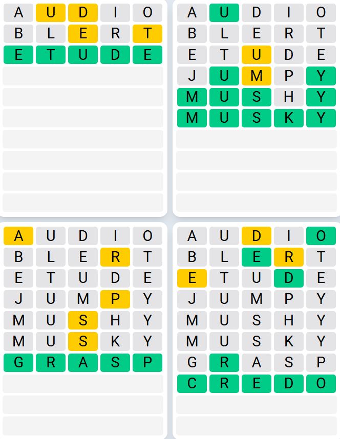 It is the most popular daily word game outside of Wordle due to the increased level of difficulty. Players must guess four five-letter words in as few as nine attempts, rather than guessing one word.