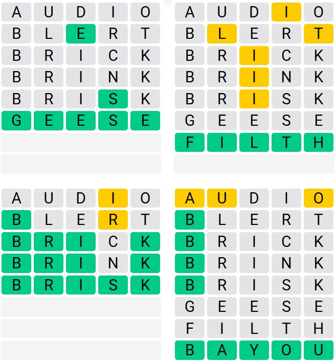It is the most popular daily word game outside of Wordle due to the increased level of difficulty. Players must guess four five-letter words in as few as nine attempts, rather than guessing one word.