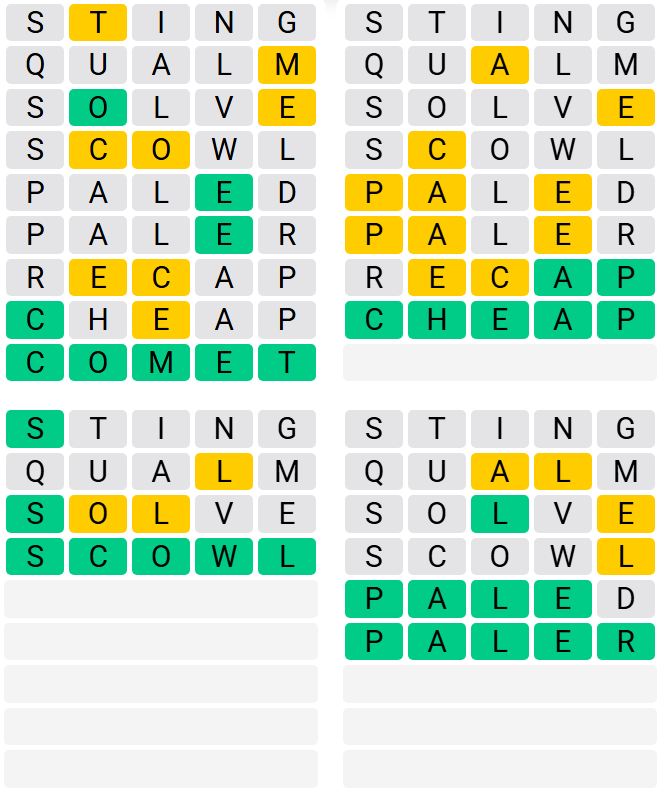 It is the most popular daily word game outside of Wordle due to the increased level of difficulty. Players must guess four five-letter words in as few as nine attempts, rather than guessing one word.