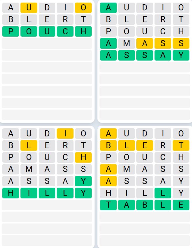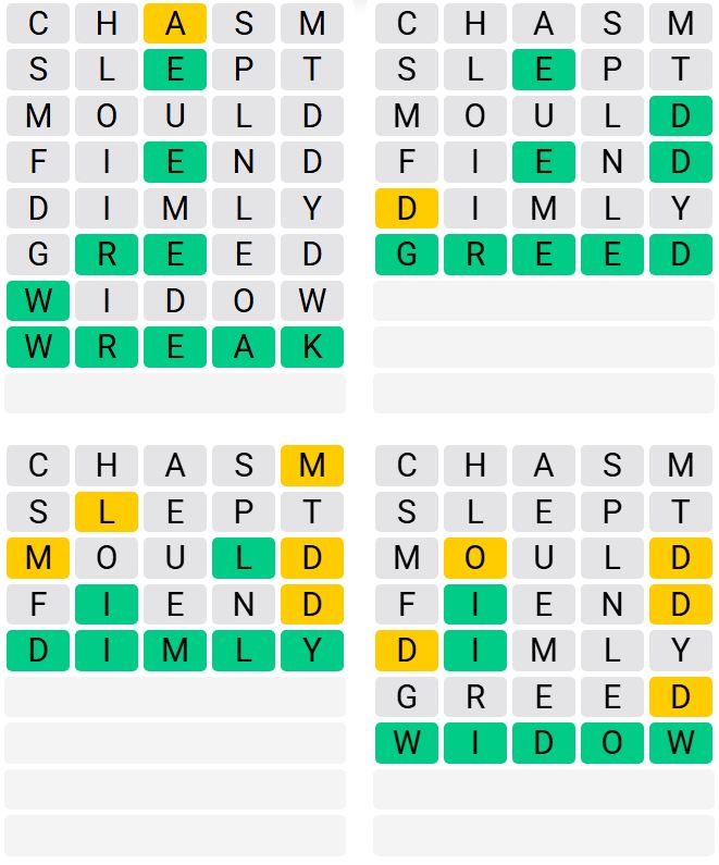 It is the most popular daily word game outside of Wordle due to the increased level of difficulty. Players must guess four five-letter words in as few as nine attempts, rather than guessing one word.