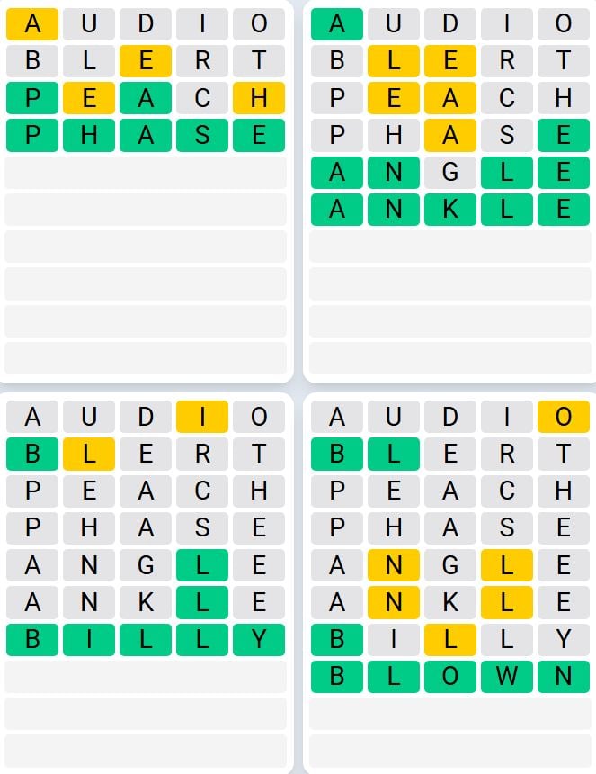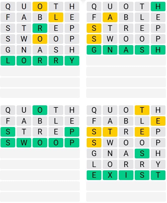 It is the most popular daily word game outside of Wordle due to the increased level of difficulty. Players must guess four five-letter words in as few as nine attempts, rather than guessing one word.