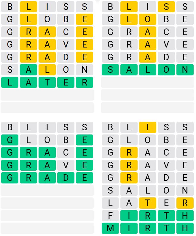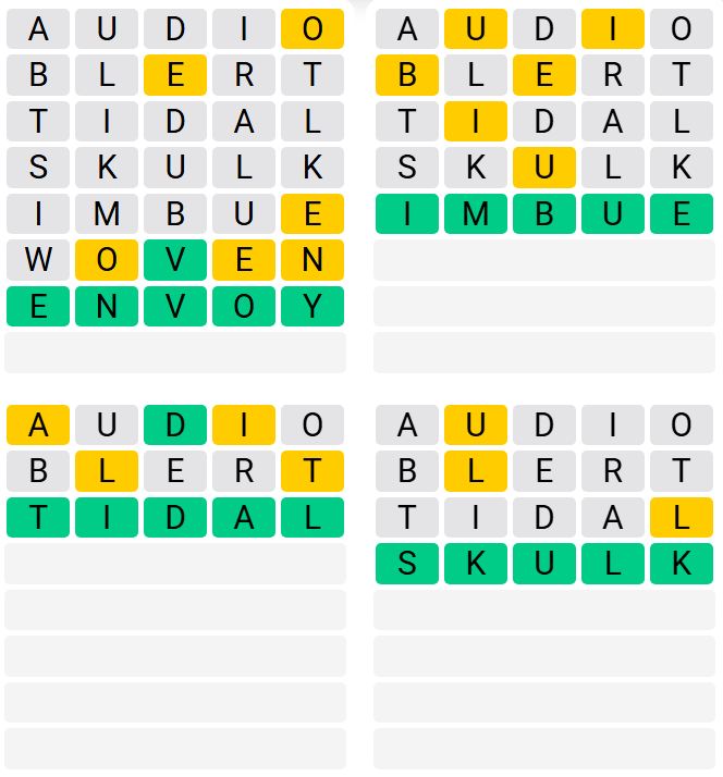 It is the most popular daily word game outside of Wordle due to the increased level of difficulty. Players must guess four five-letter words in as few as nine attempts, rather than guessing one word.