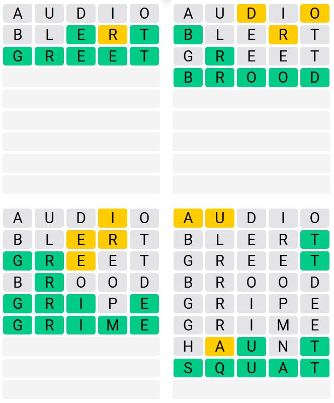It is the most popular daily word game outside of Wordle due to the increased level of difficulty. Players must guess four five-letter words in as few as nine attempts, rather than guessing one word.