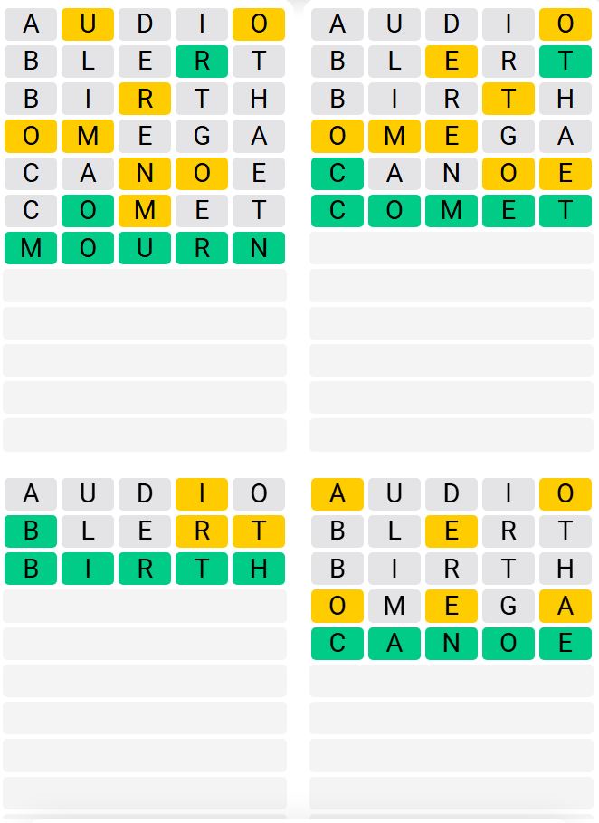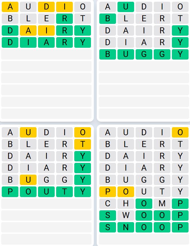 Let us know how many attempts it took you to guess today’s Quordle below.