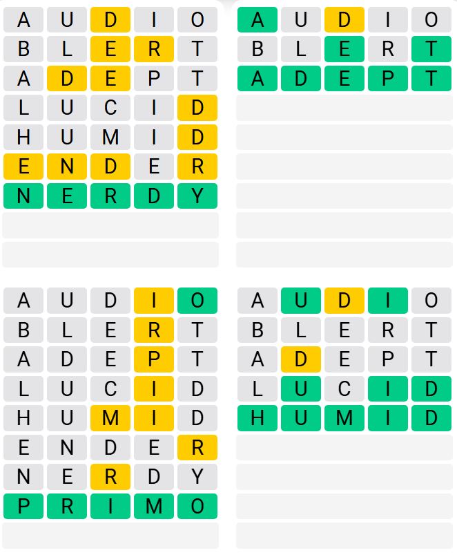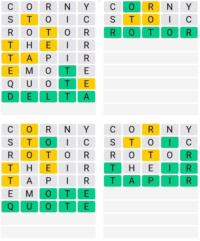 It is the most popular daily word game outside of Wordle due to the increased level of difficulty. Players must guess four five-letter words in as few as nine attempts, rather than guessing one word.