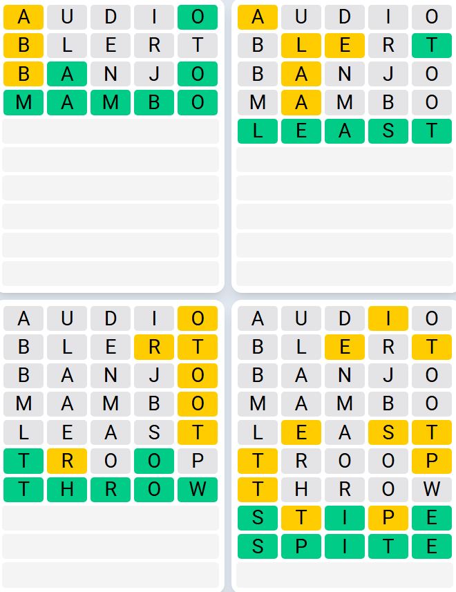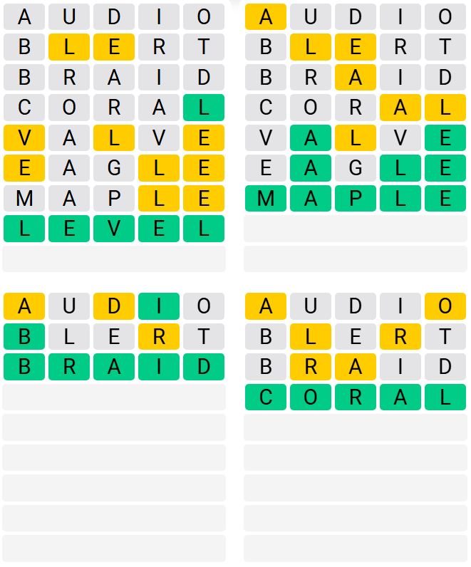 It is the most popular daily word game outside of Wordle due to the increased level of difficulty. Players must guess four five-letter words in as few as nine attempts, rather than guessing one word.