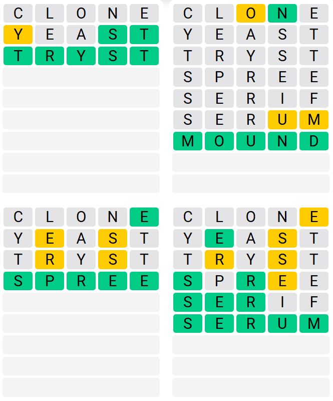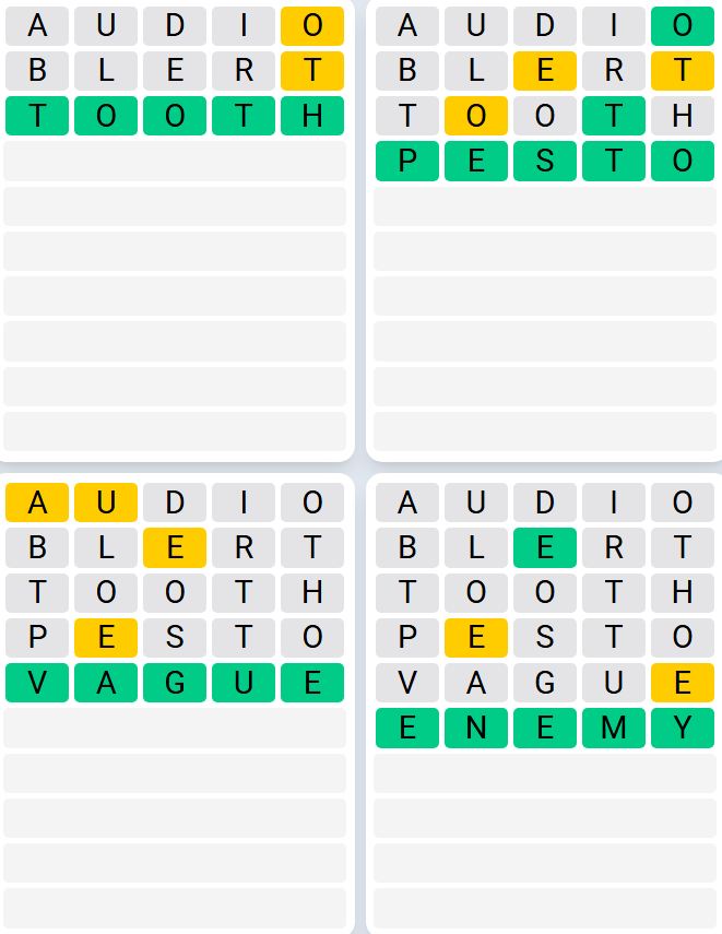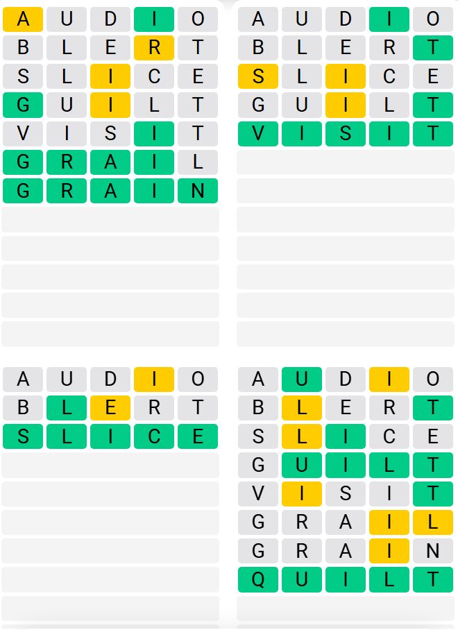 It is the most popular daily word game outside of Wordle due to the increased level of difficulty. Players must guess four five-letter words in as few as nine attempts, rather than guessing one word.