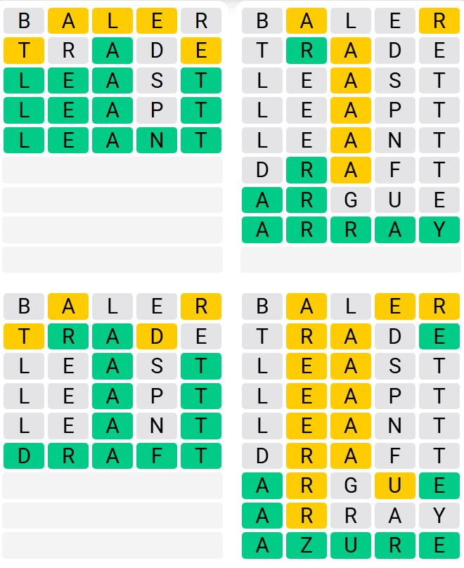 It is the most popular daily word game outside of Wordle due to the increased level of difficulty. Players must guess four five-letter words in as few as nine attempts, rather than guessing one word.
