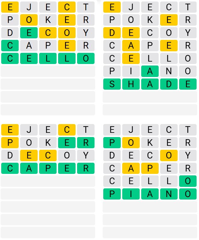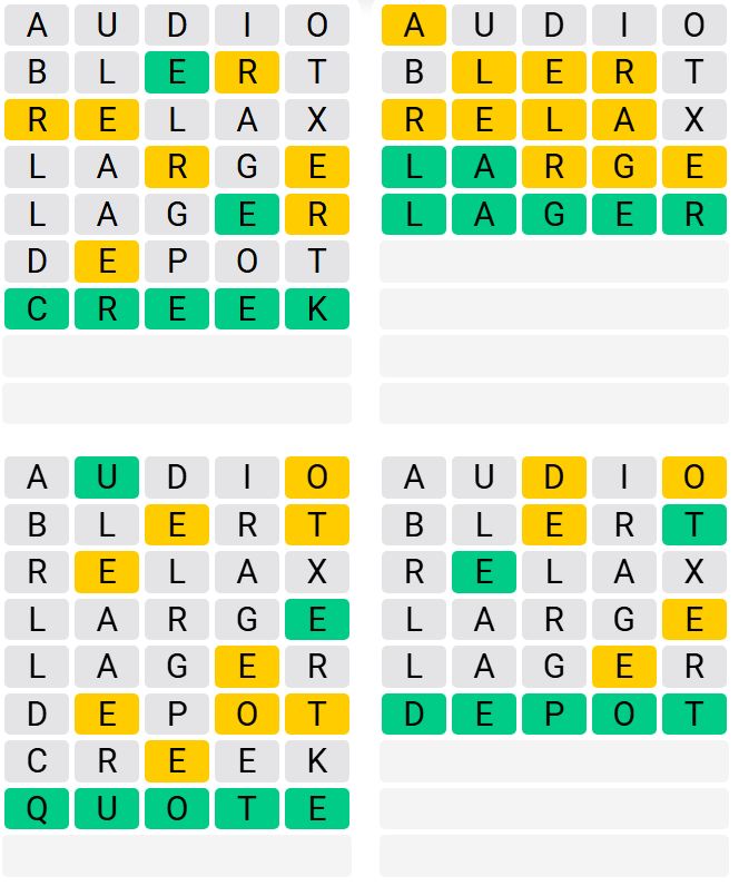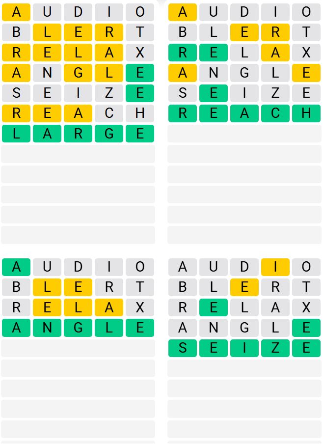 It is the most popular daily word game outside of Wordle due to the increased level of difficulty. Players must guess four five-letter words in as few as nine attempts, rather than guessing one word.