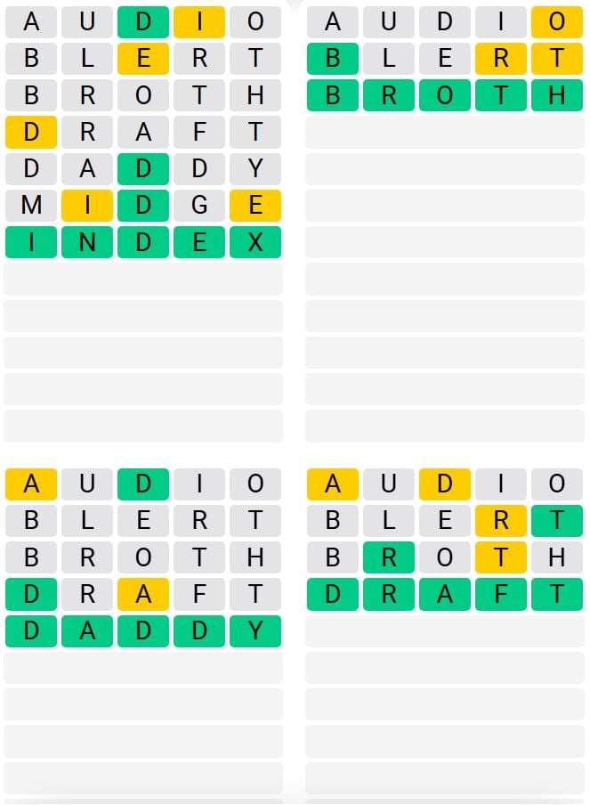 It is the most popular daily word game outside of Wordle due to the increased level of difficulty. Players must guess four five-letter words in as few as nine attempts, rather than guessing one word.