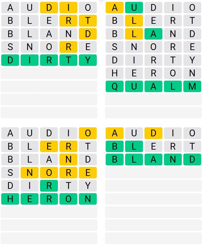 It is the most popular daily word game outside of Wordle due to the increased level of difficulty. Players must guess four five-letter words in as few as nine attempts, rather than guessing one word.