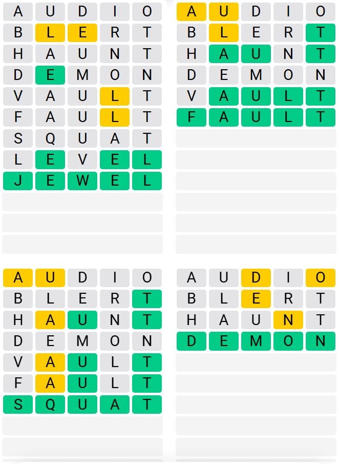 It is the most popular daily word game outside of Wordle due to the increased level of difficulty. Players must guess four five-letter words in as few as nine attempts, rather than guessing one word.