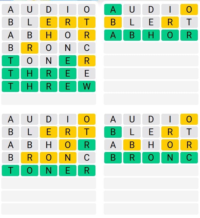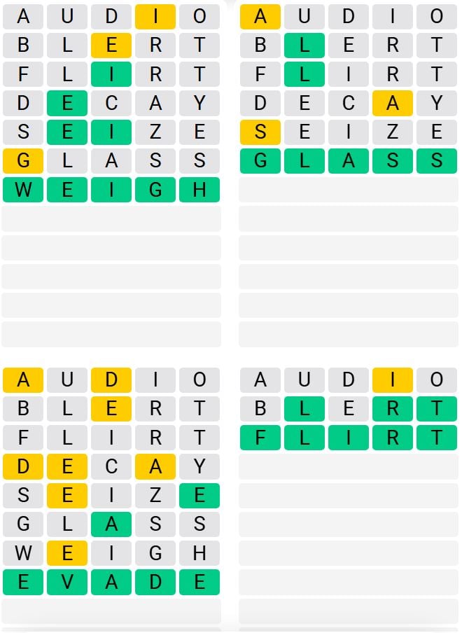 It is the most popular daily word game outside of Wordle due to the increased level of difficulty. Players must guess four five-letter words in as few as nine attempts, rather than guessing one word.