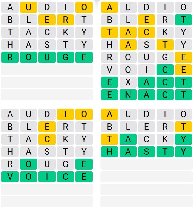 It is the most popular daily word game outside of Wordle due to the increased level of difficulty. Players must guess four five-letter words in as few as nine attempts, rather than guessing one word.