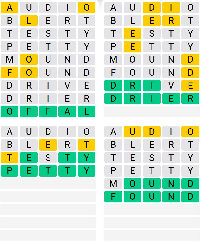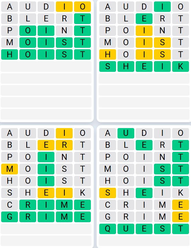 It is the most popular daily word game outside of Wordle due to the increased level of difficulty. Players must guess four five-letter words in as few as nine attempts, rather than guessing one word.