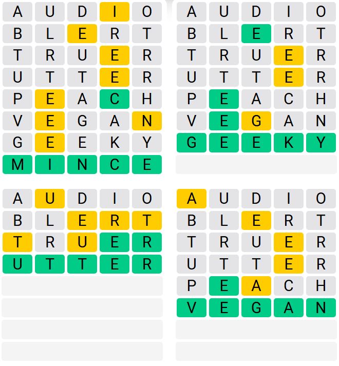 It is the most popular daily word game outside of Wordle due to the increased level of difficulty. Players must guess four five-letter words in as few as nine attempts, rather than guessing one word.