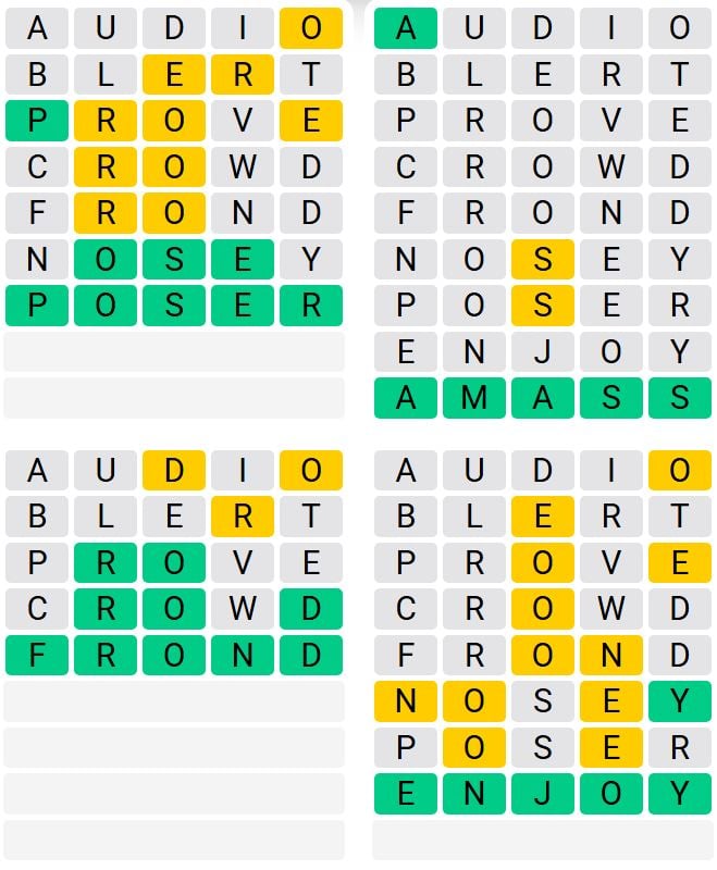 It is the most popular daily word game outside of Wordle due to the increased level of difficulty. Players must guess four five-letter words in as few as nine attempts, rather than guessing one word.