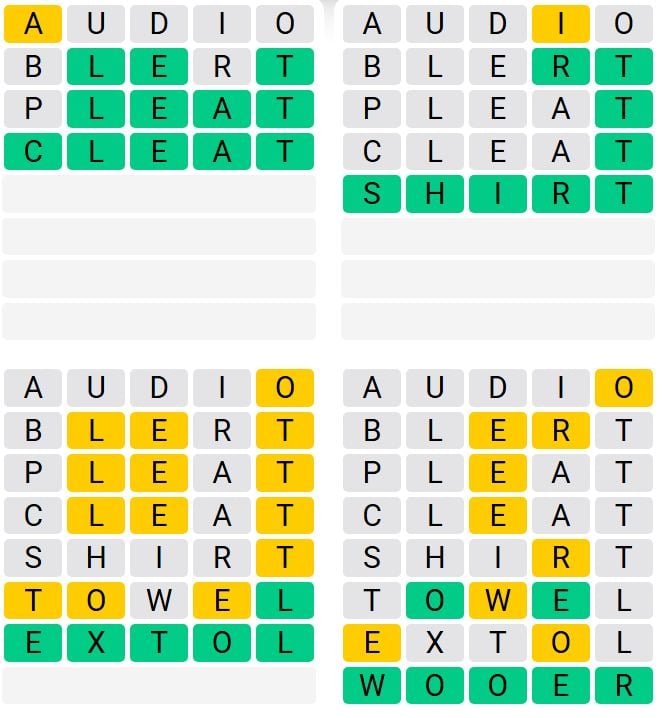 Let us know how many attempts it took you to guess today’s Quordle below.