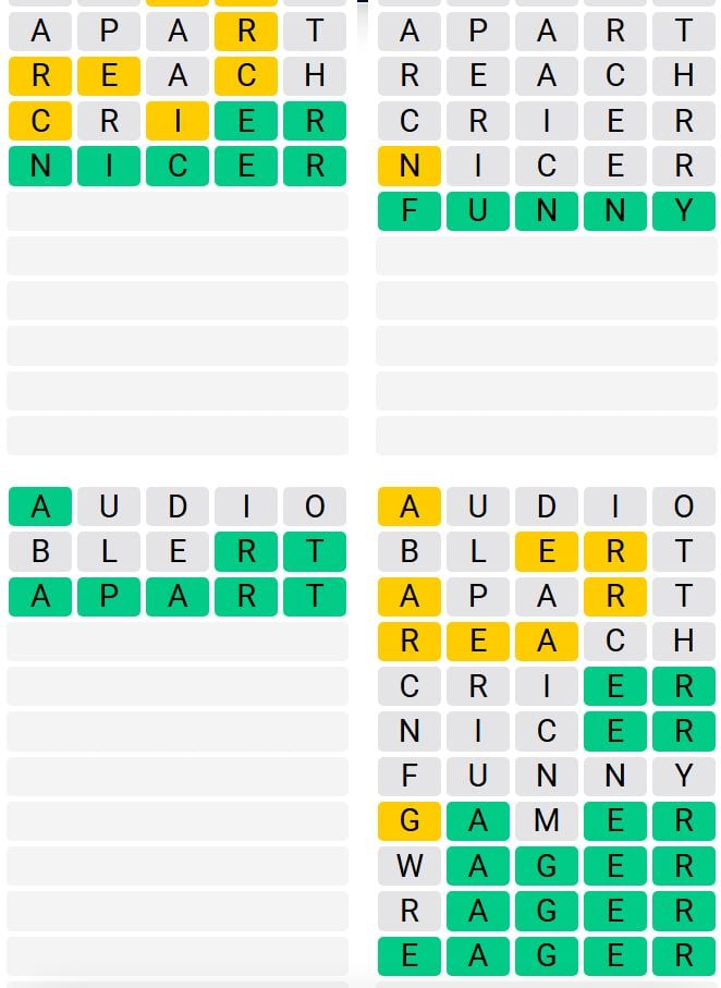 It is the most popular daily word game outside of Wordle due to the increased level of difficulty. Players must guess four five-letter words in as few as nine attempts, rather than guessing one word.