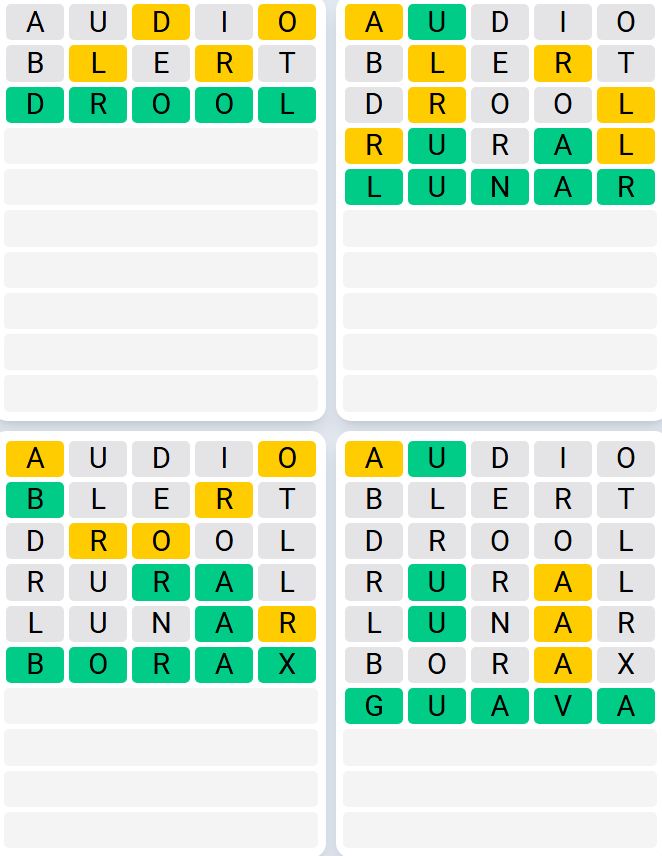 It is the most popular daily word game outside of Wordle due to the increased level of difficulty. Players must guess four five-letter words in as few as nine attempts, rather than guessing one word.