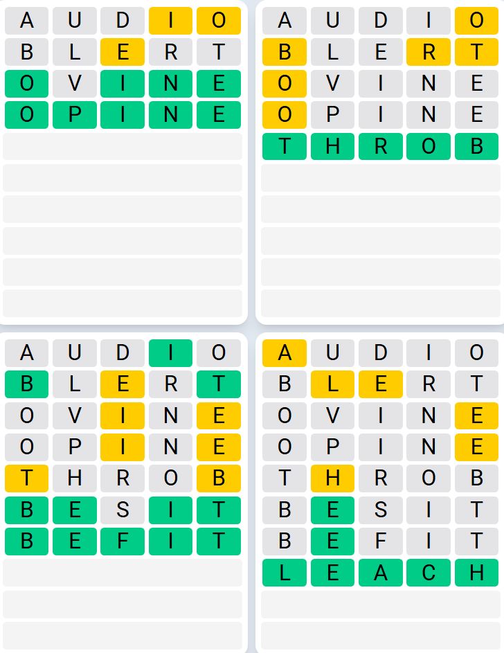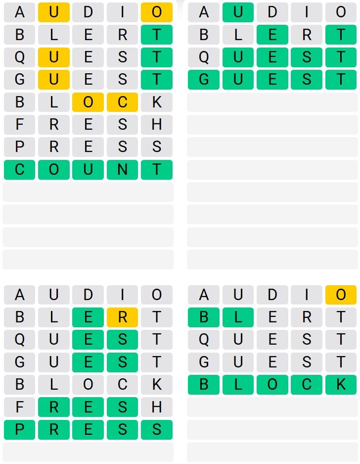 It is the most popular daily word game outside of Wordle due to the increased level of difficulty. Players must guess four five-letter words in as few as nine attempts, rather than guessing one word.