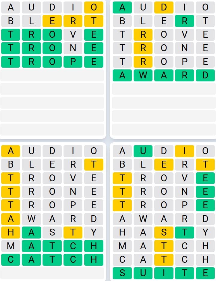 It is the most popular daily word game outside of Wordle due to the increased level of difficulty. Players must guess four five-letter words in as few as nine attempts, rather than guessing one word.
