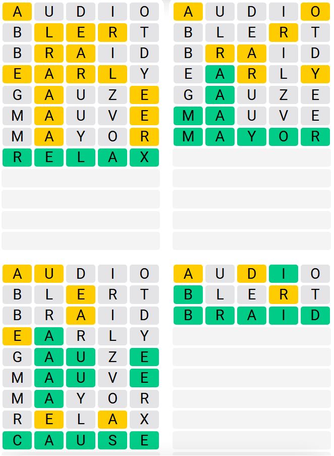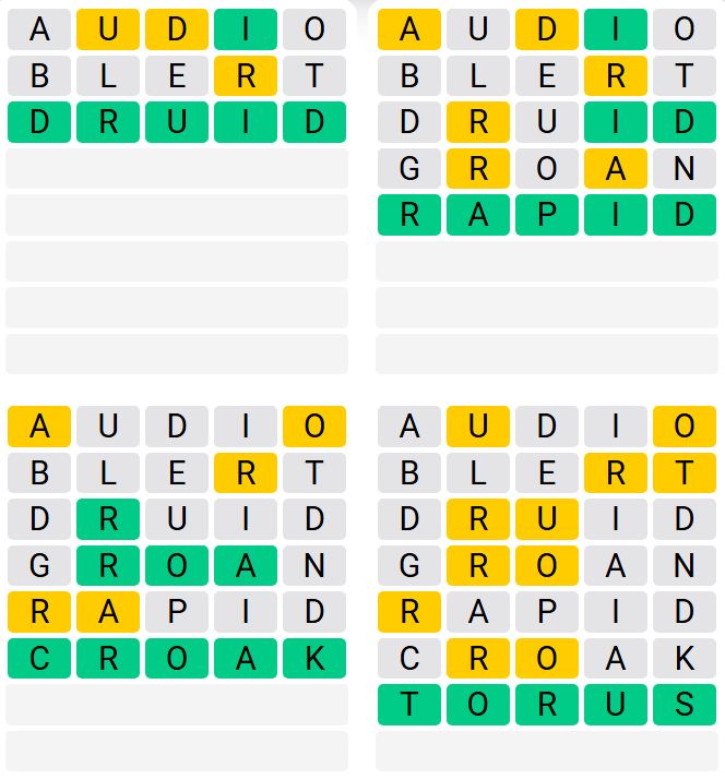 It is the most popular daily word game outside of Wordle due to the increased level of difficulty. Players must guess four five-letter words in as few as nine attempts, rather than guessing one word.