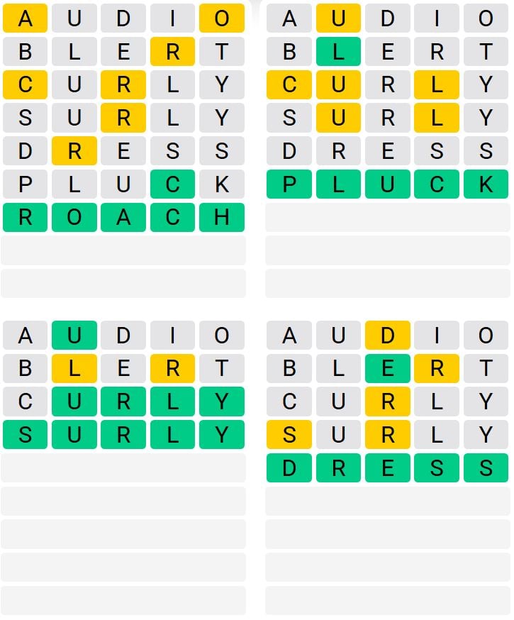 It is the most popular daily word game outside of Wordle due to the increased level of difficulty. Players must guess four five-letter words in as few as nine attempts, rather than guessing one word.